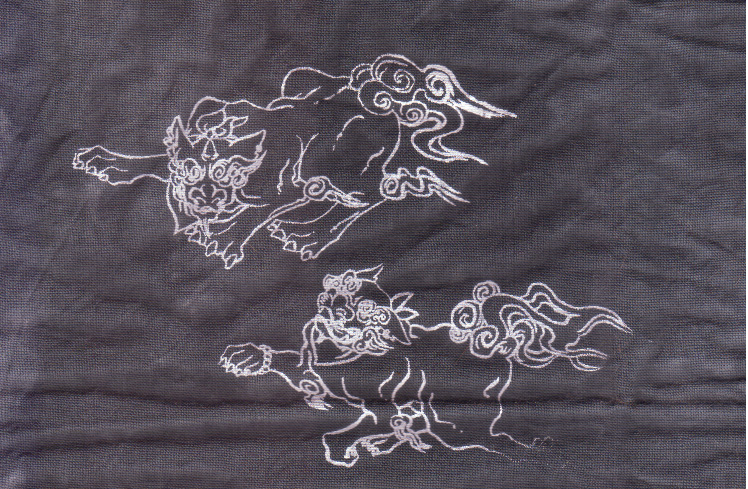 狛犬だいすき…!!黒でムラ染めした上に普通に白インクで一度刷り。